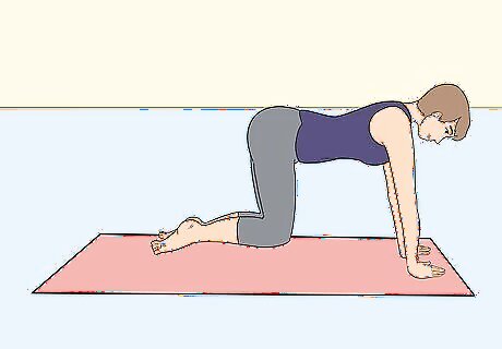 Lower yourself to your knees and support yourself with your hands. Get down on your knees first, placing them in the center of the mat. Then, lean forward on your hands to start positioning yourself. Put your hands flat on the mat.