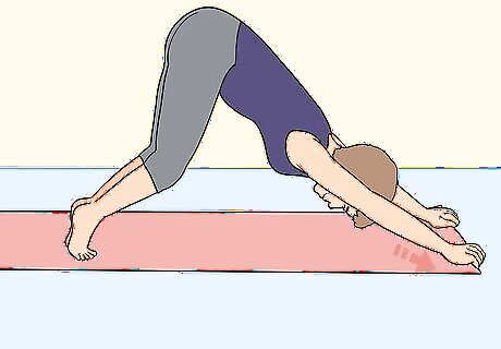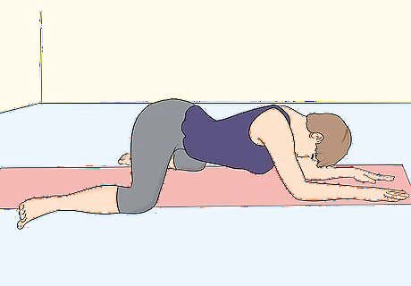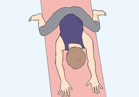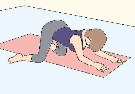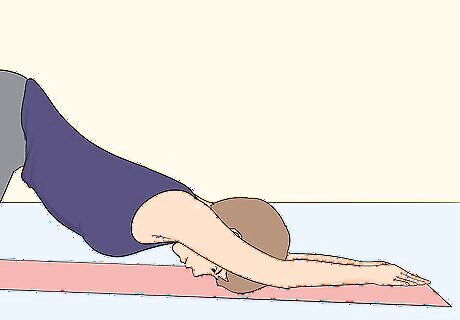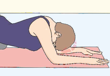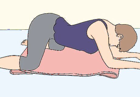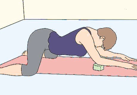 Put blocks under your arms for back pain. For some people, this pose can cause pain along your spine or in your hips. By placing short blocks under your arms, you lift your spine a bit, which in turn, helps relieve that pressure. Use small yoga blocks or even heavy books for this purpose. You can also use a folded or rolled blanket.