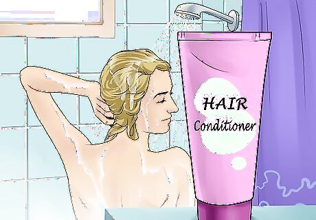 Condition your hair. Scene styles often require straightening and a great deal of products such as hairspray but this is not healthy for your hair. Straightening can fry your hair, making it weak and prone to breaking. Products such as hairspray and gel are similarly damaging to your hair, as well as the dyes commonly used for scene hairstyles. Make sure that you regularly condition your hair. As an extra measure to revitalize your strands, consider deep conditioning your hair once weekly as well. You can use normal conditioner in the shower but it is also possible to purchase products like hair serums, which can be much more effective and are usually placed after washing but before drying (much like gel). How often this is required will vary for each person. You may need to condition every day, every other day, once a week, etc. You may need to experiment to find what is best for you.