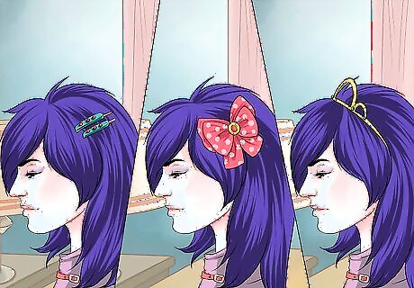 Add clips, ribbons and tiaras. Clips, ribbons and other additions can be easily purchased at stores or made yourself at home. Headbands in bright colors look particularly good with scene hairstyles and tiaras are another popular accessory. Additions such as these are a great way to emphasize your personal style.