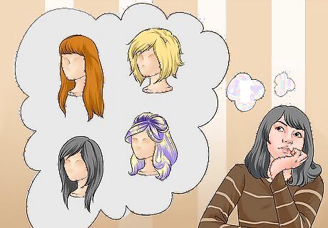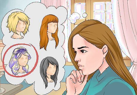 Decide on the colors for your hair. This is a two-step process consisting of: 1) which colors you want your hair to be and 2) what hair sections you want as these colors. Bright, edgy colors typically associated with scene hair include pink, blue, and purple.