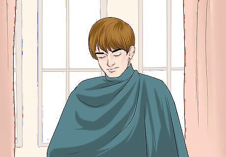 Cover yourself. Cutting hair is messy. Cover yourself, if you want to, to keep your clothes clean. You can use a bathrobe, a bed sheet, a towel, or any other cover as you see fit. You may also wish to cut your hair in a bathroom or kitchen, which will be easier to clean when you are done.