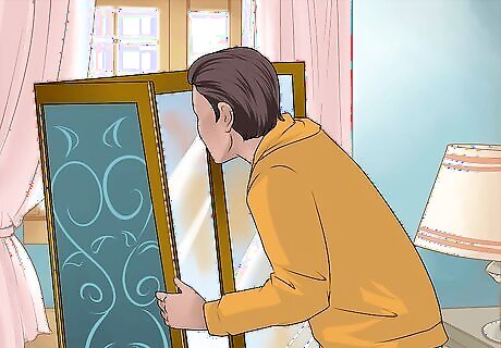 Set up your mirrors. Try to have multiple mirrors so that you can see your head from many different angles. This will help you reach the areas you can't normally see. Position a mirror in front of you, as well as one or two angled toward your side, if you have more than one large mirror. A hand mirror or additional large mirror can be placed behind you in order to view the back. Alternatively, make sure a broom and dustpan are available. A vacuum will pick up the hair great also.