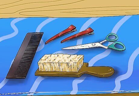 Gather your tools. Have all of the necessary combs, brushes, clips, razors and scissors nearby. This will save you the trouble of having to reach or look for them while you are trying to cut your hair. Setting them out on a table near where you will be working will significantly help. The better the quality of tools, the better the final product. Hair scissors, specifically, work much better than normal scissors for cutting hair because they are made with sharper blades. Purchase these at local beauty supply stores. Be sure the razor you are using is sharp and fresh. This will make it easier to cut your hair and reduce the likelihood of damaging it in the process. Be careful of cutting yourself.