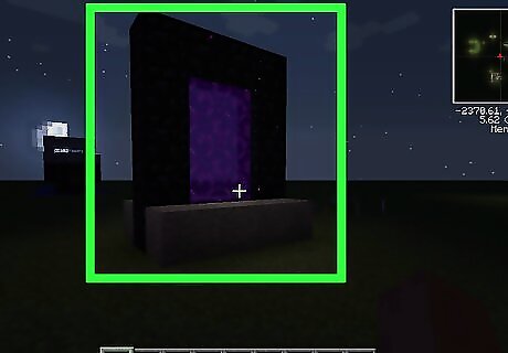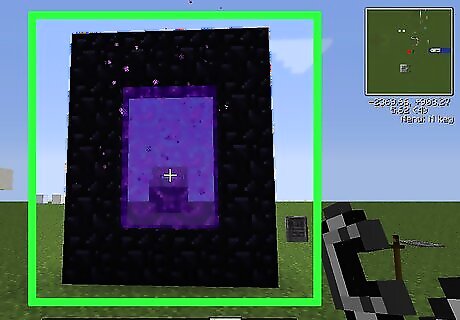 Make a Nether portal. To create a Nether portal to reach the blazes, you need 14 blocks of obsidian to create a 4x5 square. You may leave out the four corners, meaning you'd need only 10 obsidian to create it. After creation you must immediately light it with a flint and steel, which can be made from a piece of flint and an iron ingot which you may have found early on.