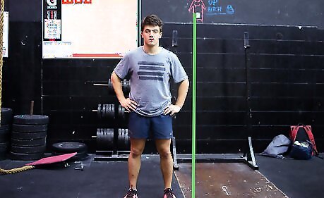 Stand upright with your feet hip-width apart. Keep your head straight and eyes forward. Balance your weight evenly between your feet. Engage your abdominal muscles and keep your shoulders back and square. Place your hands in any position that helps you maintain your balance. You can touch your hands to your hips, hold your arms out to your sides, or even grip the back of a sturdy chair if you need additional balance support.