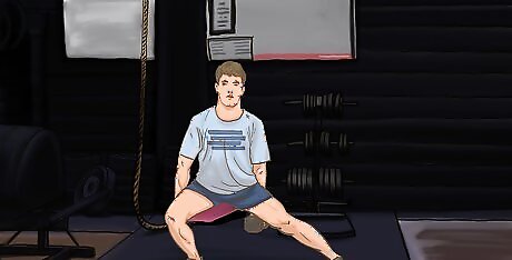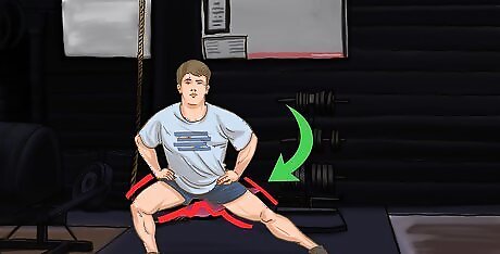 Do side lunges slowly to help you stretch before a workout. When done slowly and deliberately, side lunges are a great way to stretch and loosen your upper leg and glute muscles before exercising. Hold each lunge for 5-15 seconds, and do about 5 lunges per leg for stretching purposes. Do side lunge stretches as part of a thorough stretching routine that targets all your major muscle groups. Always take 5-10 minutes to do some full range of motion movements to warm up before engaging in moderate to intense physical activity.