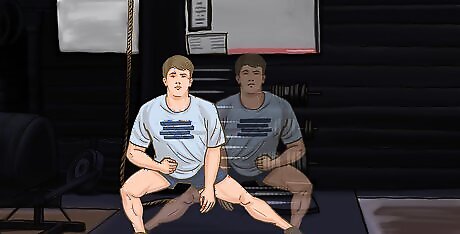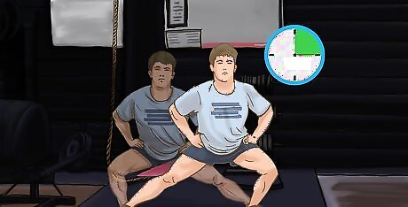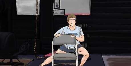Make side lunges a part of your lower body strength training. You get a lot of “bang for your buck” when you do a side lunge because it engages the muscles in your inner and outer thighs, hamstrings, quads, and glutes simultaneously. When doing side lunges as part of a strength training workout, do 2-3 sets of 10 repetitions for each leg. Pause for up to 1 minute between sets. For the best results, do several different types of lunges, including side lunges, forward lunges, reverse lunges, and other lunge variations. Try doing 2-3 sets of 10 repetitions per leg for each type of lunge. Use hand weights and increase the amount over time to enhance the strength-building capabilities of your lunges. To build all-around lower body strength, add lunges to other leg exercises like squats, calf raises, leg extensions, and hamstring curls. Aim to do strength training 2-3 times per week.