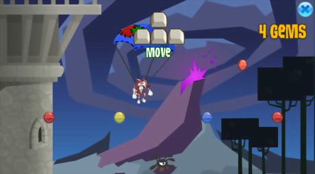 Escape the tower. After you're provided a parachute, play a short minigame much like Wind Rider in which you must parachute to the ground while collecting as many gems as you can or want. Dodge phantoms along the way to avoid losing gems by using arrow keys. Phantoms can stay in place, move up, move down, or move diagonally. Keep playing till you reach the ground and spawn back in the area you first spoke to Cosmo in.