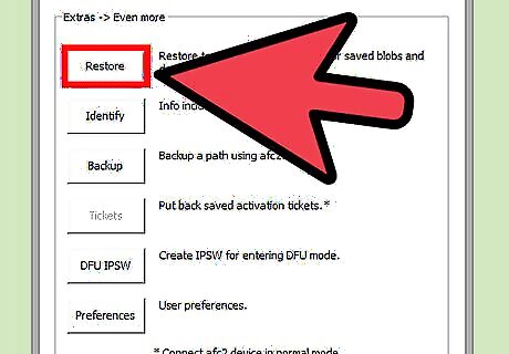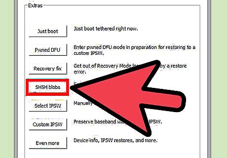 Save your SHSH Blobs and APTickets. You may need a program which is capable of capturing and saving SHSH Blobs and APTickets. These are files which your phone uses to communicate with Apple and allows it to install a firmware lower than the current version. The two best programs for this are iFaith and TinyUmbrella. There is currently no way to downgrade without having these files. You can only downgrade to the level that you have these files for. So, capture your version 6 files and you can use them when version 7 comes along, etc. iFaith has an option to use someone else’s files, however, so if you don’t have the files saved you can use that program. In iFaith, save blobs by clicking ‘Dump SHSH Blobs’ or find someone else’s by clicking ‘Show Available...’. Your phone will need to be plugged in to your computer. The tickets should be saved automatically at the same time for most devices. The following can be downgraded: an iPhone 2G, iPhone 3G, or iPhone 3GS, or iPhone 4; an iPad 1G; an iPod Touch 1G, iPod Touch 2G, iPod Touch 3G, and the iPod Touch 4G.