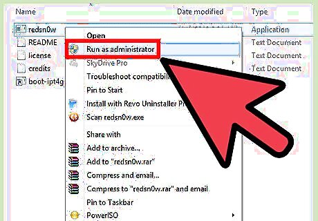 Start the program. If using Windows, you will need to run RedSn0w as an administrator (done by right-clicking on the icon).