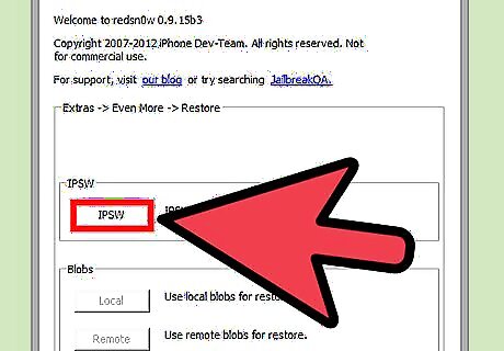 Click “IPSW”. This will allow you to choose the firmware you want to restore. If you have an unlocked phone, click yes to prevent baseband updates.