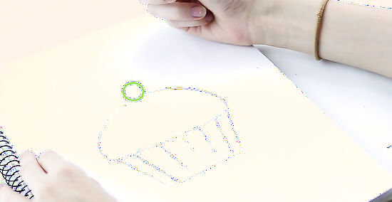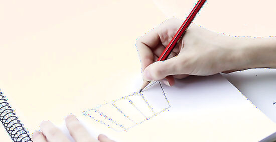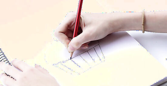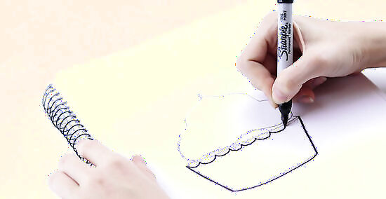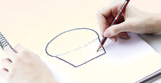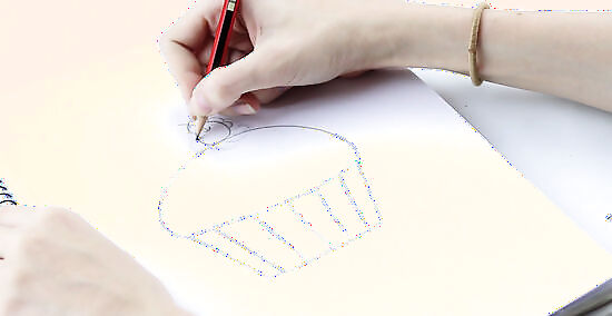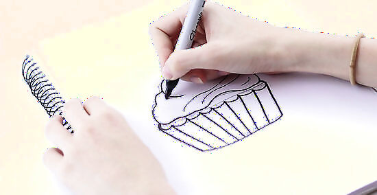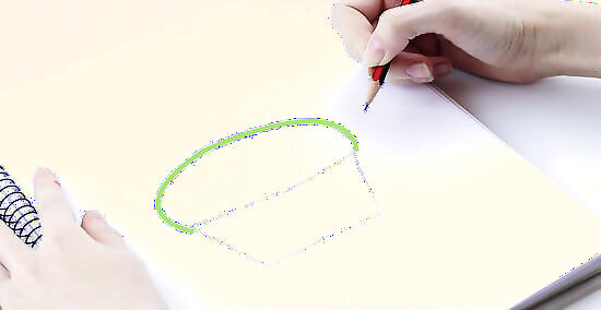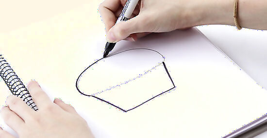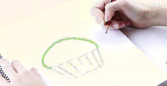 Begin the outline sketch by drawing a trapezoid shape for the base of the cupcake cup. Make sure that you draw the outline sketches very lightly using your pencil.