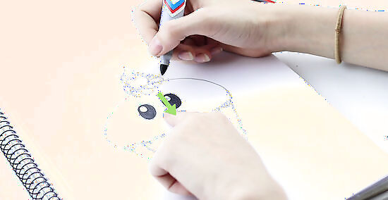 Add a smile. Put your finger in between the eyes of the cupcake. Drag your finger down until your finger is under the squiggly line. Draw a semi-circle where your finger is. If you want, color it in.