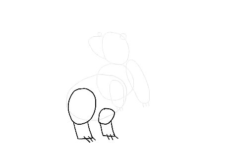 Draw another two ovals with rectangles below each to make the hind legs. Add lines on the edges of the rectangles for the claws.
