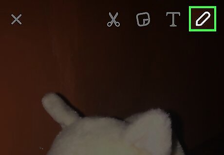 Tap the Pencil button at the top of the screen. You'll see this in the upper-right corner after taking a Snap. Tap this to enter drawing mode.