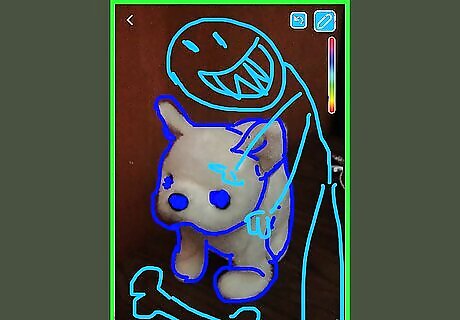 Turn real life into a cartoon. You can use the drawing tools to trace and color your photo Snaps and turn them into a cartoon version of reality. Make use of all of the different colors available, and use a dark color for your outlines. You can fill areas with color by rubbing your finger back and forth over the open area.