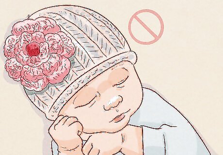 Avoid putting hats or beanies on your newborn’s head. Newborn babies cool themselves down by releasing heat from their heads. Your newborn can quickly overheat if they fall asleep wearing a hat or beanie, so it’s important to keep their head uncovered while they sleep.