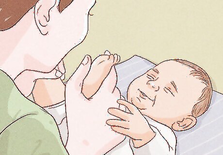 Check your newborn’s skin to feel how warm or cold they are. You can get a good indication of how warm or cold your newborn is by feeling their skin in a few different places. Check your newborn’s hairline and back of the neck, as well as their extremities like hands and feet. Their skin shouldn’t feel too warm or too cold. Signs that your newborn may be too hot include flushed cheeks, fussiness, or a sweaty back. As long as the newborn’s head and chest are warm, they should be warm. Newborns naturally have poor circulation and may have feet and hands that are cool to the touch, but this does not always mean they are cold! If your newborn’s feet feel too cold, you can put on socks or switch the onesie or wrap to one that has footies.