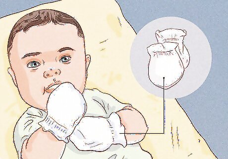 Put mittens on your newborn to prevent them from scratching their face. Newborns can be very active while they sleep and may wriggle an arm or two free from their swaddle or sleep sack. They also can have sharp fingernails and can accidentally scratch their faces while they sleep. A pair of nice, soft mittens can remove the danger if it is a cause for concern!