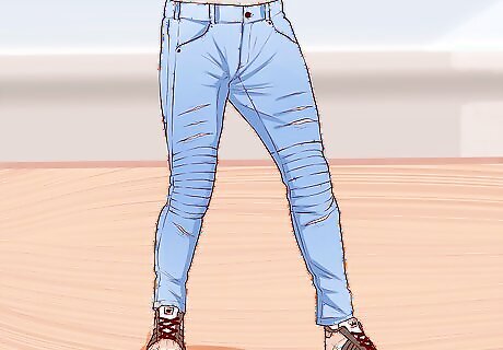 Pick the right jeans. Going along with Justin’s casual vibe, he’s often seen in jeans. If you want to be a True Belieber, you should do the same. Justin wears low-waisted skinny jeans in destroyed denim. Look for stone-washed jeans with rips in them. He likes black jeans a lot. Try Saint Laurent Original Low Waisted Destroyed Skinny Jean in black. Justin doesn’t wear high-waisted jeans, and he doesn’t wear baggy jeans as much as he wears baggy shorts.