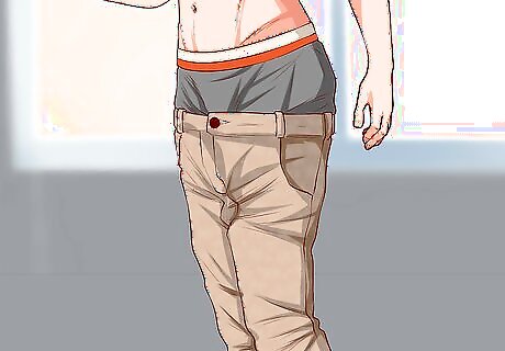 Show a little of your underwear. Justin is into the baggy look, whether it’s pants or shorts, and you can often see a little glimpse of his underwear peeking out. He often wears white underwear with the brand name Calvin Klein across the waistband. Justin has also worn Calvin Klein’s low rise cotton trunk in red flair. Be lean. Justin is in great shape. He’s muscular, and his abs are defined. He doesn’t have much body fat, which is one reason his waistbands sometimes fall down.