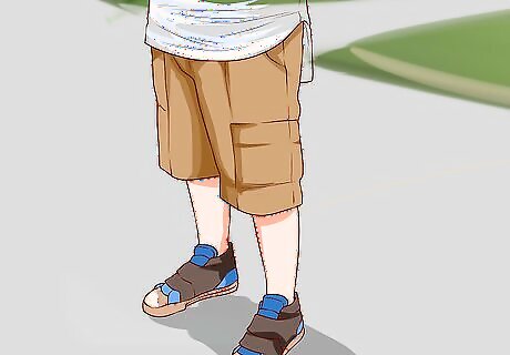 Wear baggy shorts. Justin likes this look. Think baggy gray shorts as one possibility. The shorts shouldn’t be too, well, short. Wear shorts that fall just above the knees if you want to look more like a True Belieber. That’s how Justin does it. Basketball team shorts are a favorite. For example, Justin has worn Los Angeles Clippers baggy basketball shorts. Justin also has been photographed in baggy red shorts that sometimes fall slightly down, revealing a glimpse of his Calvin Klein underwear!