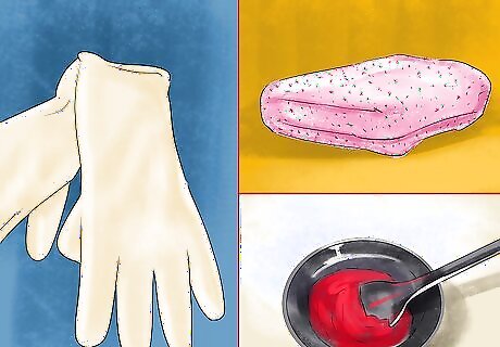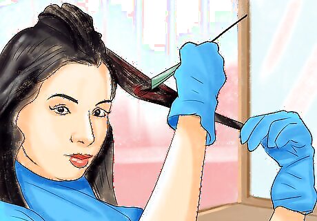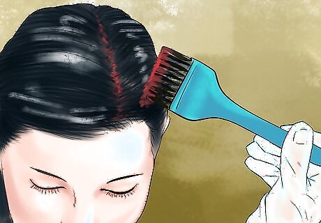 Set up your area for dyeing your hair. Lay some newspaper on the surfaces, mix your dye if needed, get out gloves, towels, a comb, hair clips etc. Make sure you have everything you will need during the dyeing process.