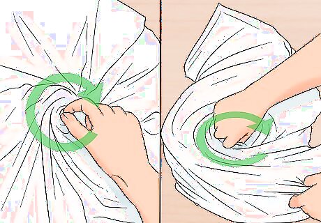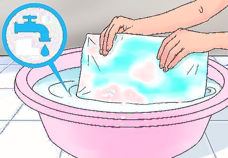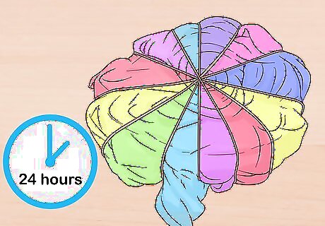 Let your dye soak inside a plastic bag for 24 hours for best results. Place your dyed tablecloth into a plastic grocery bag, and set it in a location where it will not be disturbed. Come back for it the next day, and rinse it under cold water until the water is clear. Then, launder your tie-dyed tablecloth in warm water, and let it air dry. This way, your tablecloth will be highly saturated and colorful.