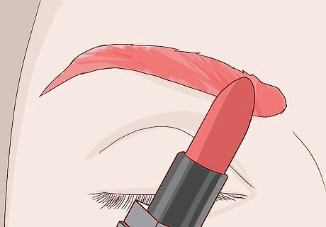 Apply lipstick to your eyebrows for a bright result. Lipstick isn't just for your lips. You can use it to change the color of your eyebrows. Use a small brush to apply it to your eyebrows, following the direction of the hair. Opt for a matte or cream formula in a bright color. Avoid using shimmery or glossy lipstick. The lipstick method works especially well when you glue your brows down and layer powder on top first. Then, you can go into that layer of powder and sketch over the top with any kind of liquid lipstick.