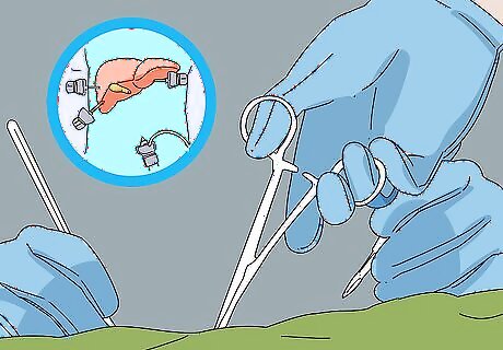 Undergo a “keyhole” surgery to remove your gallbladder. If symptoms from your gallstone are severe, your doctor or an abdominal surgeon will need to perform a surgery to remove the stone. In a so-called keyhole surgery, the surgeon will make a 2–3 cm (0.79–1.18 in) incision near your navel and other 1 centimetre (0.39 in) incisions near your gallbladder. The surgeon will then insert a laparoscope and surgically remove your gallbladder. A laparoscope is a thin, flexible tube with a camera and light on 1 end. The procedure—known as a laparoscopic cholecystectomy—is quick and only takes 60–90 minutes. You'll be put under a general anesthetic for the duration of the operation. Since the surgery isn't very invasive, it's typically an outpatient procedure. You should recover fully within 10 days.
