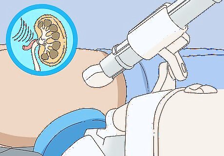 Break the gallstone apart through shock wave dissolution. This process—medically known as “lithotripsy”—will involve a doctor using a small sonic transmitter to beam sound waves through the wall of your abdomen and into the gallbladder. The sound waves will break apart the gallstone into multiple tiny pieces. Although the procedure is fast and painless, it may not be effective on all types of gallstones. Once the stone has been broken apart, it'll move safely through the bile duct and into the digestive system, where it will be broken down.