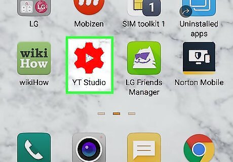 Launch YouTube Studio. Look for a red gear icon with a white triangle on your home screen or in the app drawer.