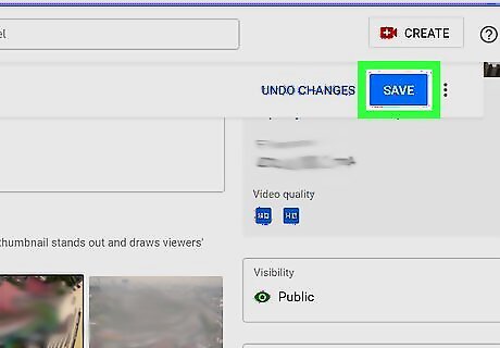 Select a thumbnail. Under the "Thumbnail" section, select a different still shot in the video to use as your thumbnail. If your account is verified and in good standing, you can choose instead to upload an image saved on your computer by clicking Upload thumbnail. If you have not verified your account, hover over the question mark icon in the top right corner of the "Upload thumbnail" tile, and select Verify. Follow the instructions for verification. Refresh the YouTube Studio screen or navigate back to it and click Upload Thumbnail again.