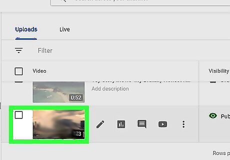 Click on the video that you wish to edit a thumbnail for. Click the video preview, or click the pencil icon next to it.