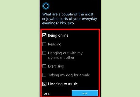 Cortana is your personal assistant. So she would like to know about your interests. She might propose you some questions. Answer to all that she questions you.