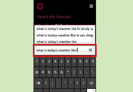 You can ask Cortana almost anything. Suppose you ask Cortana to predict weather of the day you can say or type What is today's weather like? and she'll give you the weather forecast for the entire day and based on your location.