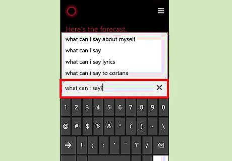If you are new to Cortana and do not know what to question her you can question her (or type) "WHAT CAN I SAY?" and she'll give you a list telling what she can do.