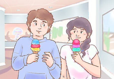 Take friends to an ice cream shop for a cold treat. When it’s a hot day out, enjoying ice cream or frozen yogurt is a good way to cool down. Ask a friend to meet you at the nearest ice cream shop, or invite your family to come with you.