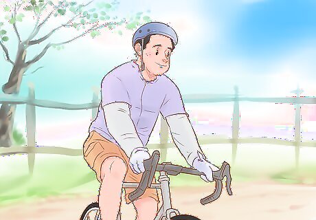 Ride your bike through a park or neighborhood. If you have a bike, take it out for a ride with friends or family members. You can take a leisurely ride around a shaded park, or you can go on a trek across town to get in some exercise.