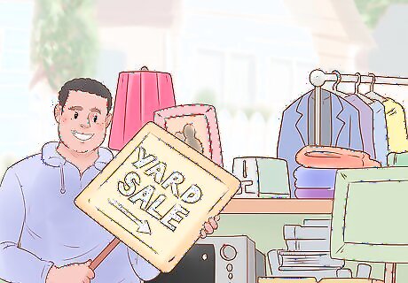 Plan a yard sale to make some extra money. If you have a bunch of things you don’t need anymore and want to get rid of them, put prices on your items and have a yard sale. Ask other members of your family if they have anything they’d like to sell, too, and advertise the sale ahead of time so people know about it. Post flyers in your neighborhood telling the date, time, and location of your yard sale. Make sure your items are reasonably priced so that they sell.