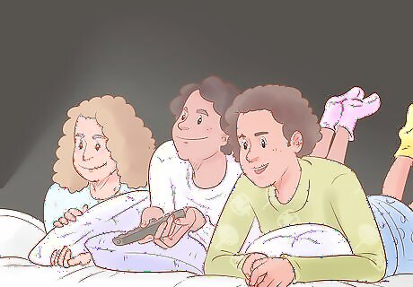 Invite a friend over for a sleepover. You can invite one friend over, or you can make it a group activity and invite over a few (after checking with your parents). Order pizza, watch movies, play games, or just spend the night talking to one another. Tell your friends ahead of time whether or not they need to bring anything, such as a sleeping bag and pillow.