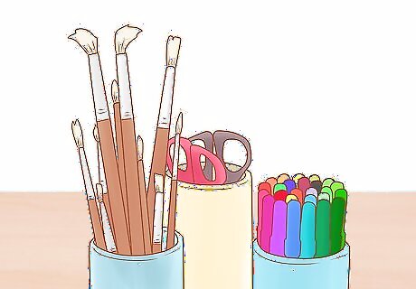 Get creative using art supplies around the house. If you have paints, markers, crayons, construction paper, or any other sort of craft supplies, gather them together and see what you can create. You can use paints to decorate boxes, notebooks, or even clothing, or use beads to create jewelry. Decorate a shoe box with construction paper and markers to create a time capsule, or bedazzle a backpack or pair of shoes for school. Cut up different fabrics and tie them onto a string to create a hanging decoration for your room.