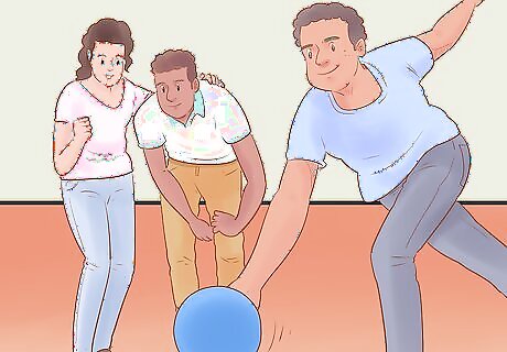 Play a game like bowling or laser tag with friends. Ask a group of friends or your family members to visit a bowling alley with you or a laser tag arena to play against one another. This works especially well with large groups. You can grab a bite to eat before or after the game with your friends or family.