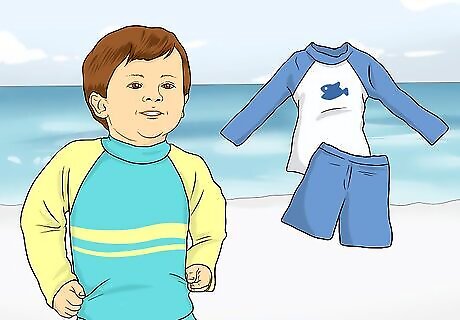 Dress your toddlers in lightweight, light-colored clothing. Light-colored clothing reflects the sun’s rays and can help keep toddlers from getting too hot. Dress children in a single layer of clothing that covers their arms and legs. Look for fabrics with built-in sun protection, such as long-sleeved swim shirts and swim pants.