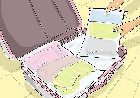 Use resealable storage bags to keep clothes, diapers, and other items dry. Pack going-home outfits, complete with extra diapers, in 1 gallon (3.8 l) resealable plastic bags to ensure your toddlers will have something clean to wear in the car, and bring extra bags to drop wet clothes in when you leave. You can also use these bags to keep your phone and other sensitive items safe from sand and water damage.