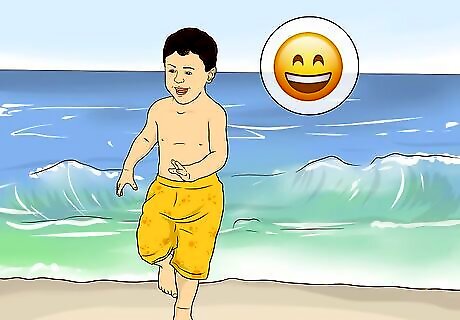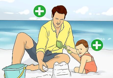 Don’t force toddlers to go into the water. Toddlers may be overwhelmed by a beach environment, especially if it’s their first visit. Don’t force them into the water if they show signs of being afraid. Instead, focus on fun activities in the sand where they feel comfortable.