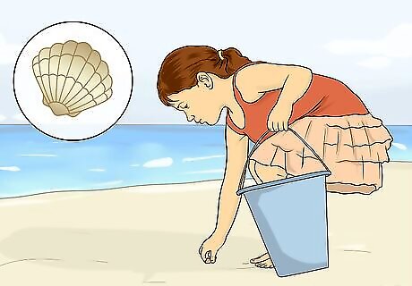 Search for seashells and sand dollars. There are all sorts of fun treasures to find on the beach. Point out the different things you see to your toddlers and let them pick out a seashell to bring home. Depending on the beach, you may find some trash hidden in the sand, so you'll need to supervise your toddlers on these hunts so you can lead them away from any garbage.