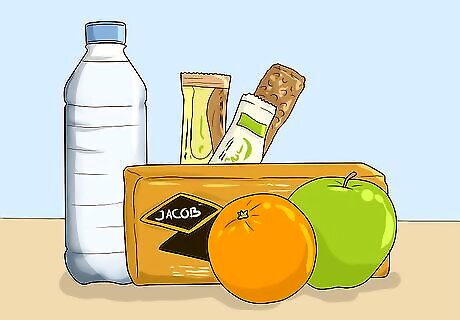 Freeze water bottles the night before so you don't have to bring ice. The frozen bottles will help you keep snacks cool without having to lug around a bunch of ice. As the water melts, you’ll have plenty of drinks on hand to stay hydrated. You should also pack healthy snacks that will travel well. Fruits, veggies, granola bars, crackers, and sandwiches are all great options to keep your toddlers from getting hungry while you’re enjoying the sand.