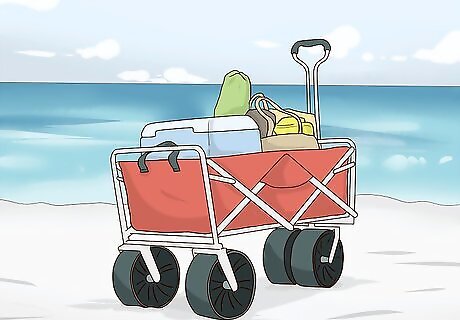 Make the trip from the car easier with a cart or all-terrain wagon. Instead of trying to drag everything — plus a couple of toddlers — in a heavy bag, invest in a lightweight wheeled cart or a wagon. As a bonus, the kids will have fun playing with the cart in the sand! Standard wagon wheels can sink in the sand and cause the wagon to get stuck, so look for a beach cart or a wagon with wide wheels and treads designed to navigate sand.